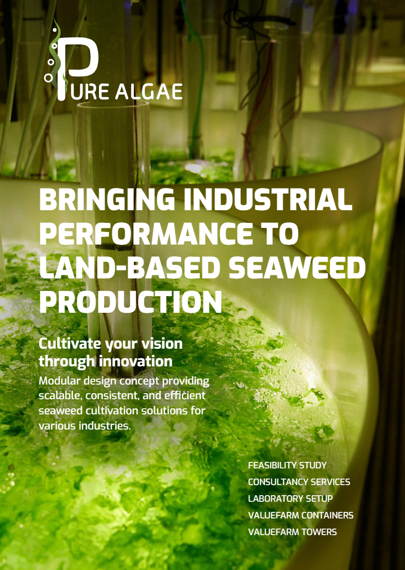 Pure Algae develops and delivers reliable, modular production systems for hatchery facilities and land-based seaweed cultivation - enabling emission capture and utilization, while ensuring the best tools for prime quality seaweed production according to our customers' specific needs.